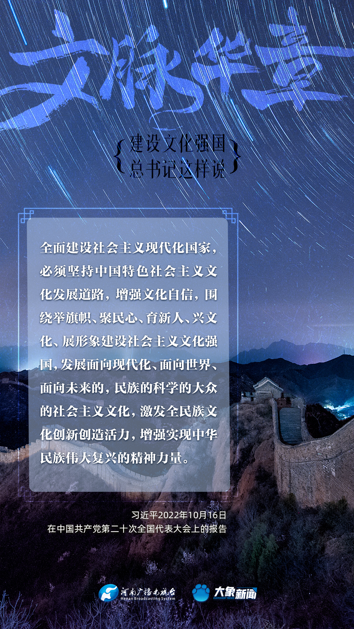 黨的十八大以來,習(xí)近平總書記站在全局和戰(zhàn)略高度,就建設(shè)社會(huì)主義文化強(qiáng)國提出一系列新思想新觀點(diǎn)新論斷,為我們堅(jiān)定文化自信,堅(jiān)持中國特色社會(huì)主義文化發(fā)展道路,提供了指引。大象新聞與您一起學(xué)習(xí)、領(lǐng)悟。