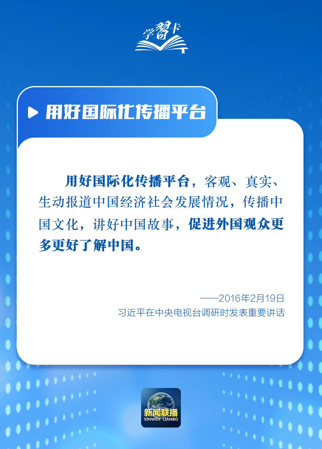 習近平總書記高度重視國際傳播能力建設,指出當前外宣工作處于歷史最好時期,同時也面臨最大壓力,強調要全面加強和改進國際傳播工作,深化文明交流互鑒,形成同我國綜合國力和國際地位相匹配的國際話語權,增強中華文明傳播力影響力。一起學習↓