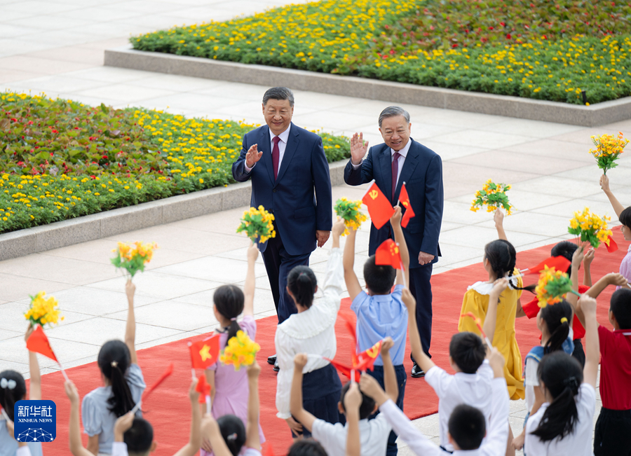 8月19日,中共中央總書記、國家主席習(xí)近平在北京人民大會(huì)堂同來華進(jìn)行國事訪問的越共中央總書記、國家主席蘇林舉行會(huì)談。這是會(huì)談前,習(xí)近平在人民大會(huì)堂東門外廣場為蘇林舉行歡迎儀式。新華社記者 姚大偉 攝
