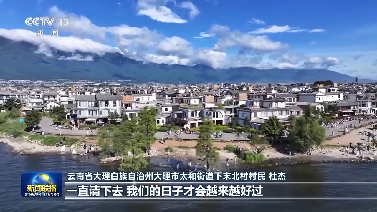 云南省大理白族自治州大理市太和街道下末北村村民 杜杰:我們村的人去洱海,如果看到垃圾他們會(huì)去撿。政府對(duì)洱海保護(hù)的決心力度是很大的,現(xiàn)在慢慢把我們村民也感化了,一定要保護(hù)好洱海,洱海水清了,一直清下去,我們的日子才會(huì)越來越好過。