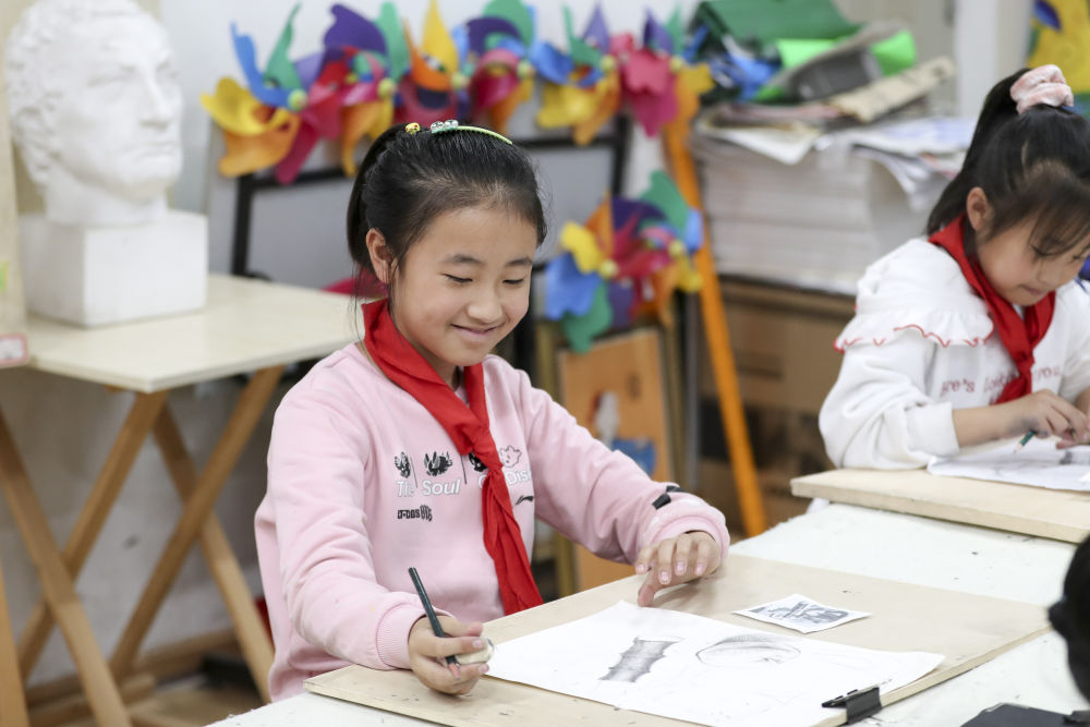 2021年10月27日,學生在黑龍江省哈爾濱市榆樹鎮(zhèn)中心校新鄉(xiāng)小學鄉(xiāng)村學校少年宮參加美術(shù)學習班。近年來,黑龍江省各地以鄉(xiāng)村小學為基礎(chǔ),大力發(fā)展鄉(xiāng)村學校少年宮,開設德育、文藝、體育、科普、手工等多種課外活動,滿足學生需求,培養(yǎng)孩子們的興趣愛好和特長。