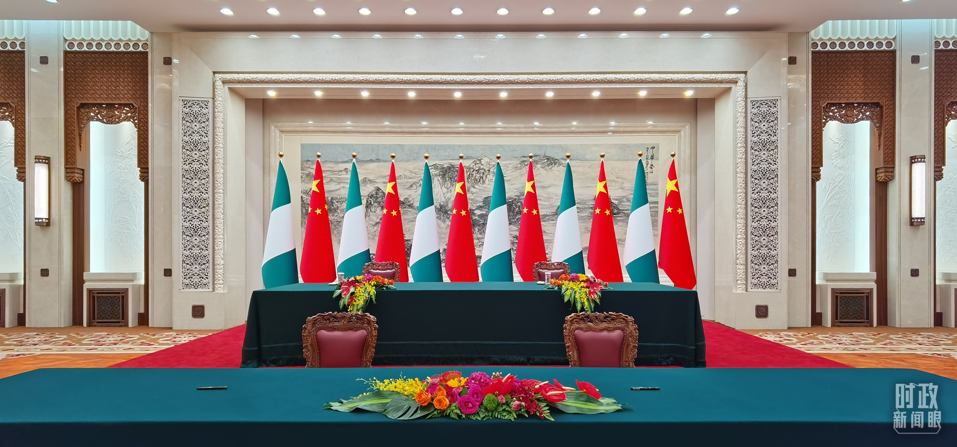 △中尼兩國元首在這里共同見證簽署多項(xiàng)雙邊合作文件,這是開始前的現(xiàn)場。(總臺央視記者郭鴻拍攝)