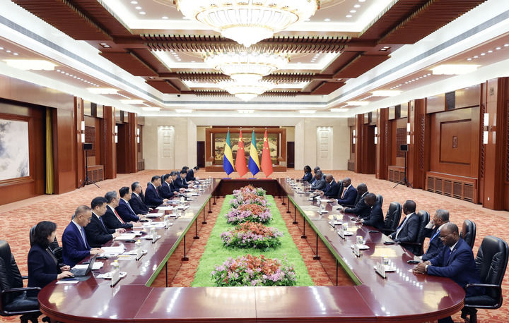 9月4日下午,國(guó)家主席習(xí)近平在北京人民大會(huì)堂會(huì)見(jiàn)來(lái)華出席中非合作論壇北京峰會(huì)的加蓬總統(tǒng)恩圭馬。