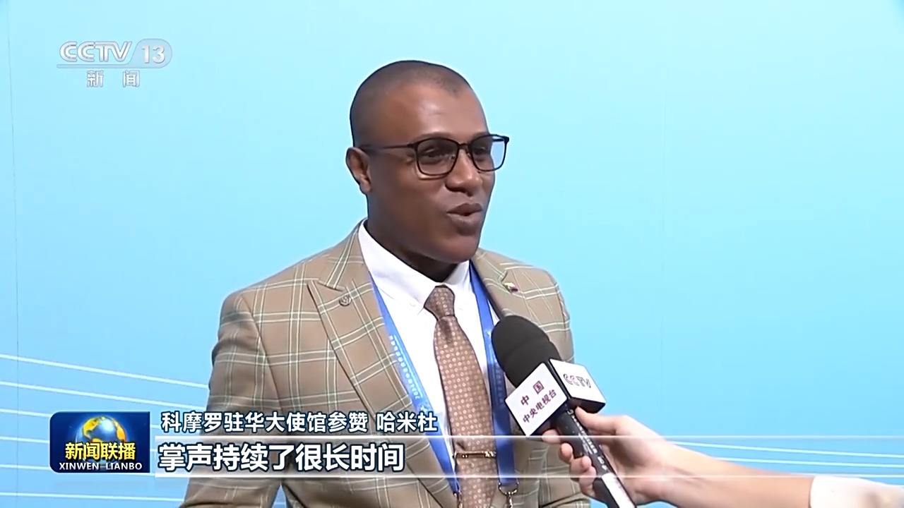 科摩羅駐華大使館參贊 哈米杜:每一個在現(xiàn)場聆聽講話的人都感到很振奮。大家都在鼓掌,掌聲持續(xù)了很長時間。中非關(guān)系整體定位提升至新時代全天候中非命運共同體,它將為非洲的發(fā)展帶來更多機遇,將促進中非雙方以及非洲國家之間的交流合作。