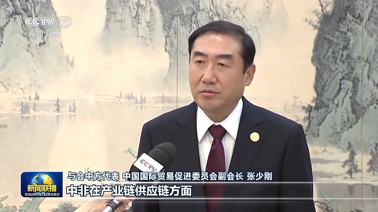 與會中方代表、中國國際貿(mào)易促進委員會副會長 張少剛:中非在產(chǎn)業(yè)鏈供應(yīng)鏈方面具有極強互補性。中國貿(mào)促會將用好中國國際供應(yīng)鏈促進博覽會等合作平臺,促進中非經(jīng)貿(mào)合作高質(zhì)量發(fā)展,推動中國大市場成為非洲大機遇。