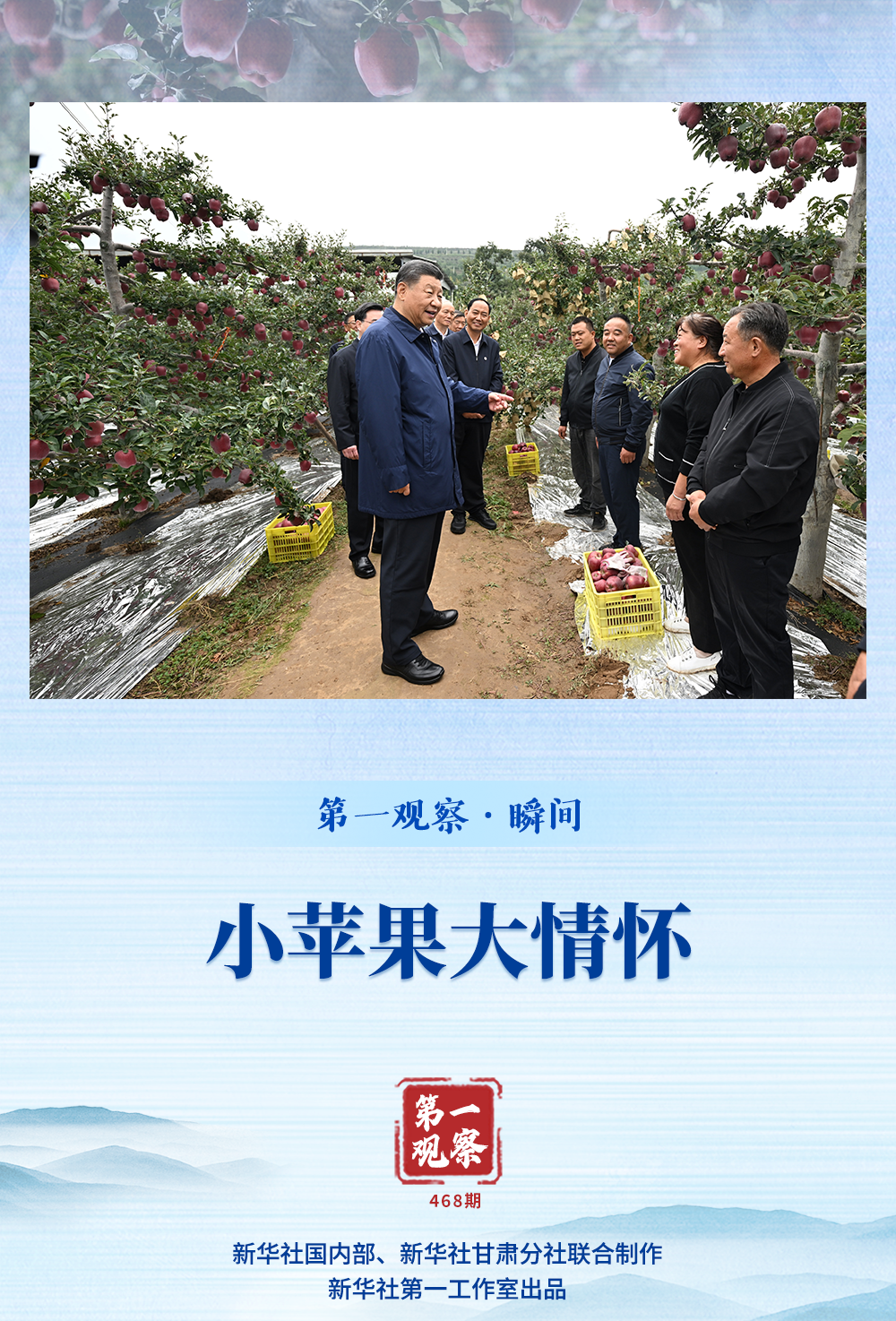 9月11日上午,習(xí)近平總書記來到甘肅天水市麥積區(qū)南山花牛蘋果基地考察。新華社記者定格了這樣一個(gè)瞬間——