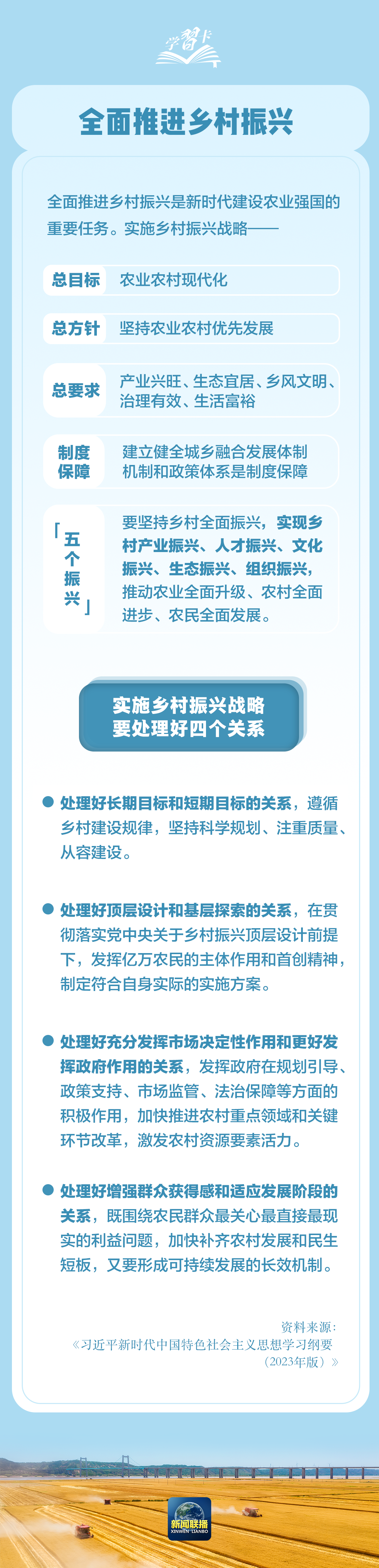 農(nóng)業(yè)農(nóng)村農(nóng)民問題是關(guān)系國計(jì)民生的根本性問題,農(nóng)業(yè)強(qiáng)國是社會(huì)主義現(xiàn)代化強(qiáng)國的根基。習(xí)近平總書記強(qiáng)調(diào),實(shí)現(xiàn)高質(zhì)量發(fā)展,也離不開農(nóng)業(yè)發(fā)展。拓展現(xiàn)代化發(fā)展空間,農(nóng)業(yè)農(nóng)村是大有可為的廣闊天地。