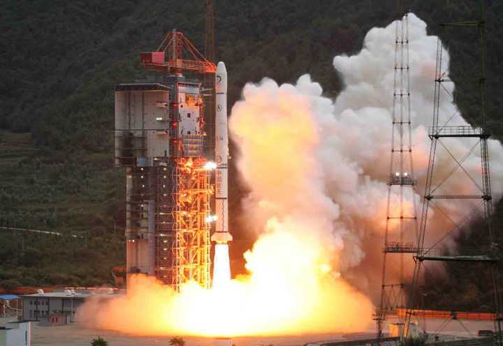 2007年10月24日,搭載著我國(guó)首顆探月衛(wèi)星嫦娥一號(hào)的長(zhǎng)征三號(hào)甲運(yùn)載火箭在西昌衛(wèi)星發(fā)射中心三號(hào)塔架點(diǎn)火發(fā)射。新華社記者 李剛 攝