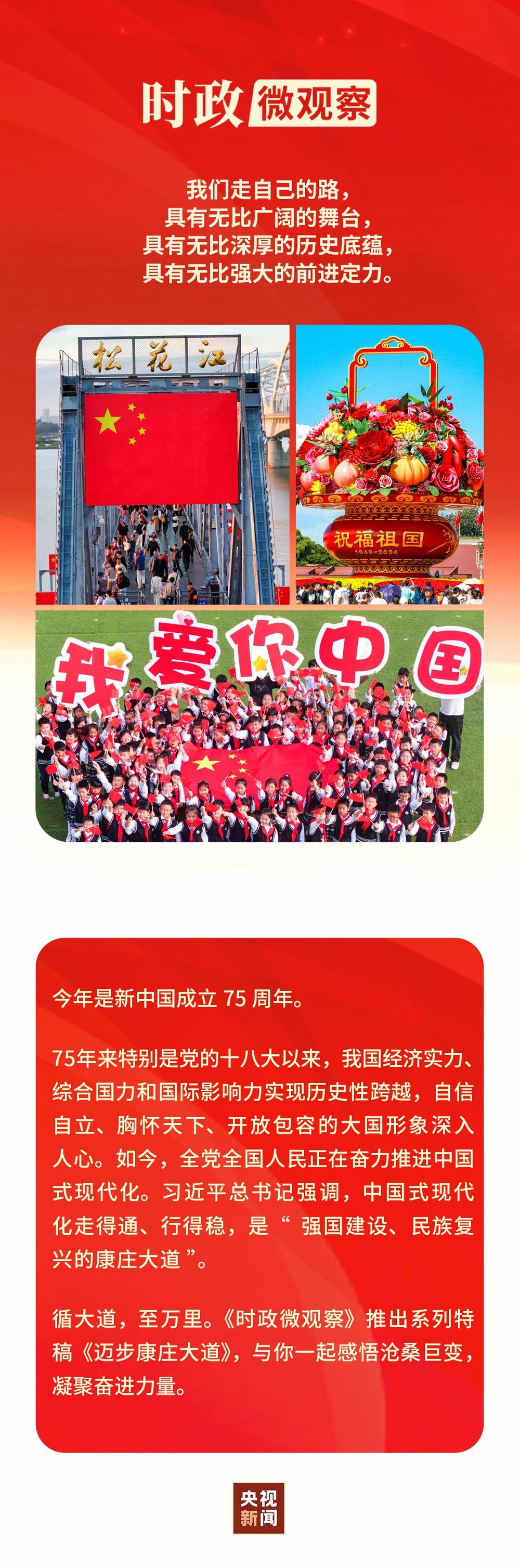 航天夢是強國夢的重要組成部分。75年來,中國發(fā)生了翻天覆地的變化。習近平總書記說,“其根本原因在于我們找到了一條符合中國國情、順應時代潮流、得到人民群眾擁護支持的正確道路,這就是中國特色社會主義”。