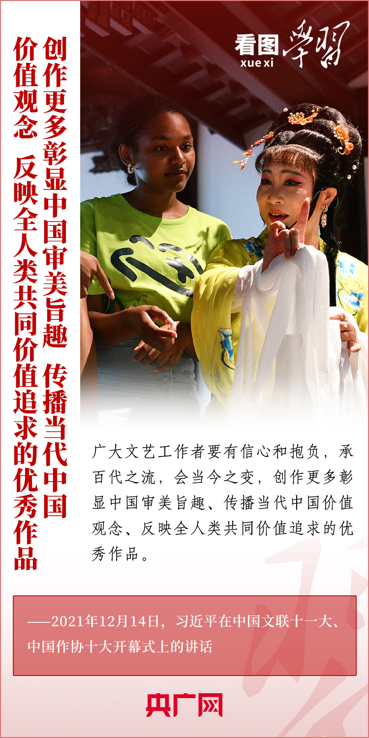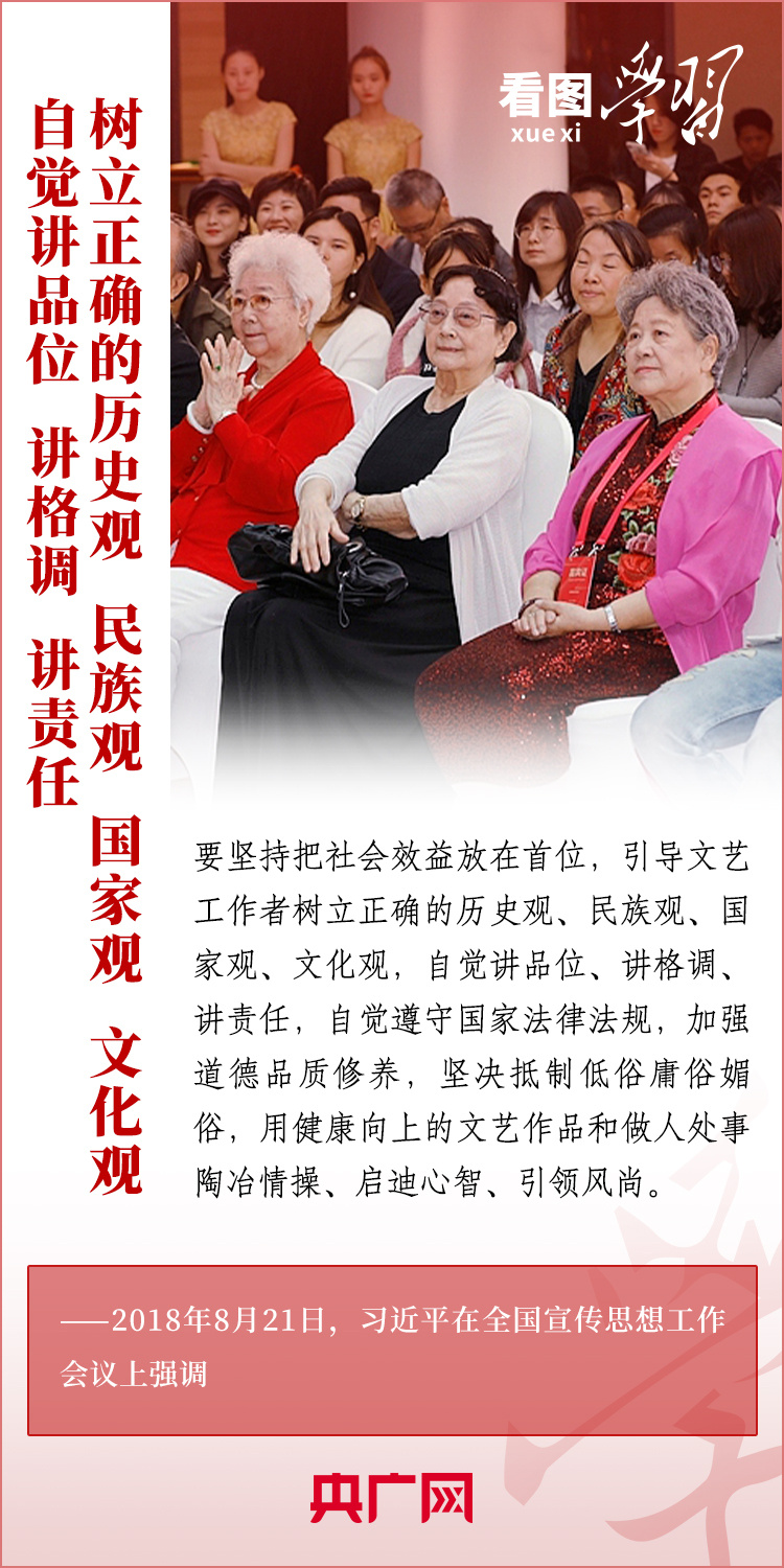 十年來,我國廣大文藝工作者深入生活、扎根人民,創(chuàng)作出一大批彰顯中國精神、體現(xiàn)人文關懷、富有藝術創(chuàng)新力的優(yōu)質(zhì)文藝作品,努力用豐富多彩的文藝精品滿足人們對精神文化生活的需求。如何創(chuàng)作出更多無愧于時代、無愧于人民的優(yōu)秀作品?讓我們一起深刻領悟總書記的“文藝觀”。