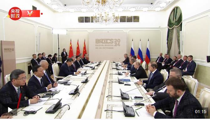 當(dāng)?shù)貢r間10月22日下午,國家主席習(xí)近平在喀山克里姆林宮同俄羅斯總統(tǒng)普京舉行會晤。
