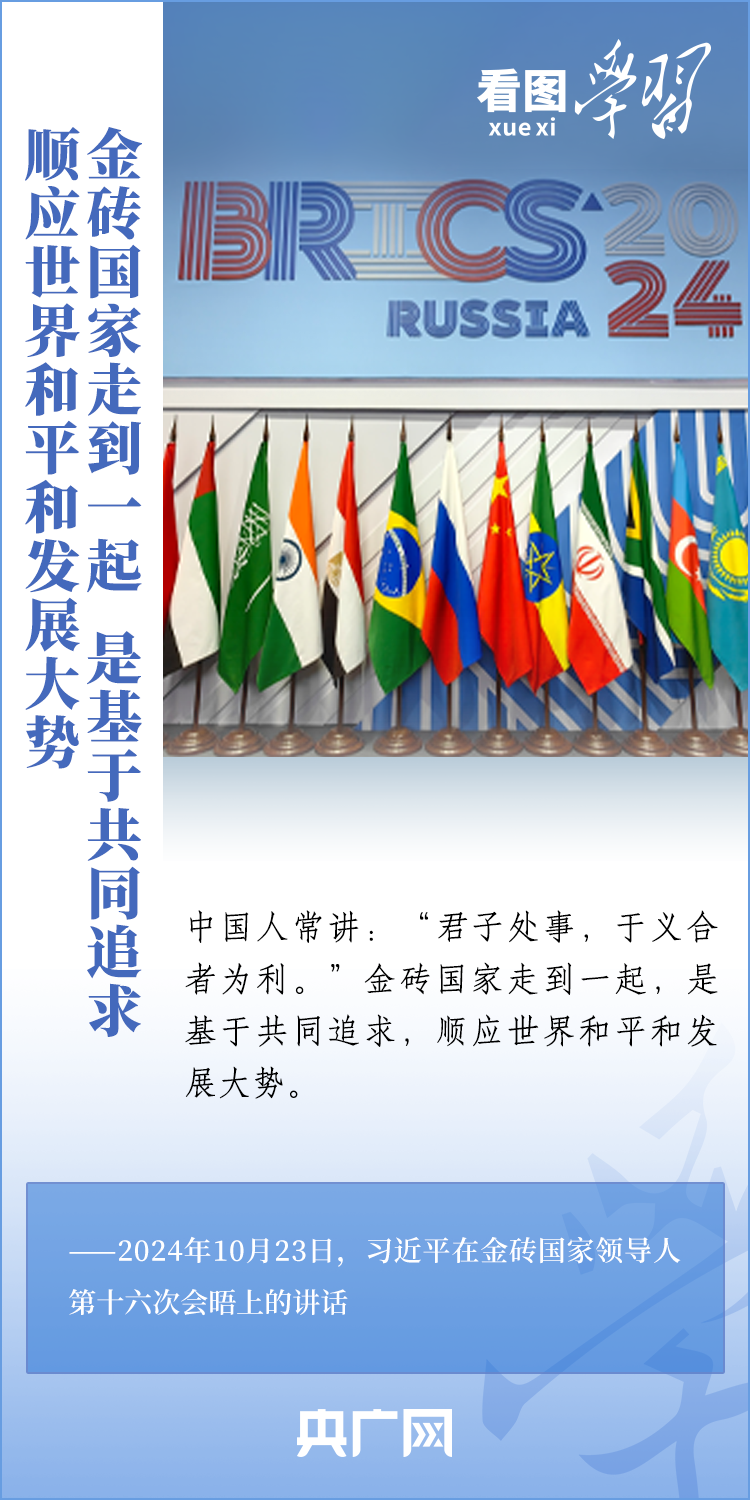 當?shù)貢r間10月23日,國家主席習近平在俄羅斯喀山出席金磚國家領(lǐng)導人第十六次會晤并發(fā)表重要講話。習主席深刻闡述推動“大金磚合作”高質(zhì)量發(fā)展的中國主張,就金磚大家庭發(fā)展合作提出五點務實舉措,表達了中方愿同金磚各國一道,攜手更多“全球南方”國家共同推動構(gòu)建人類命運共同體的真誠愿望。一起來學習!