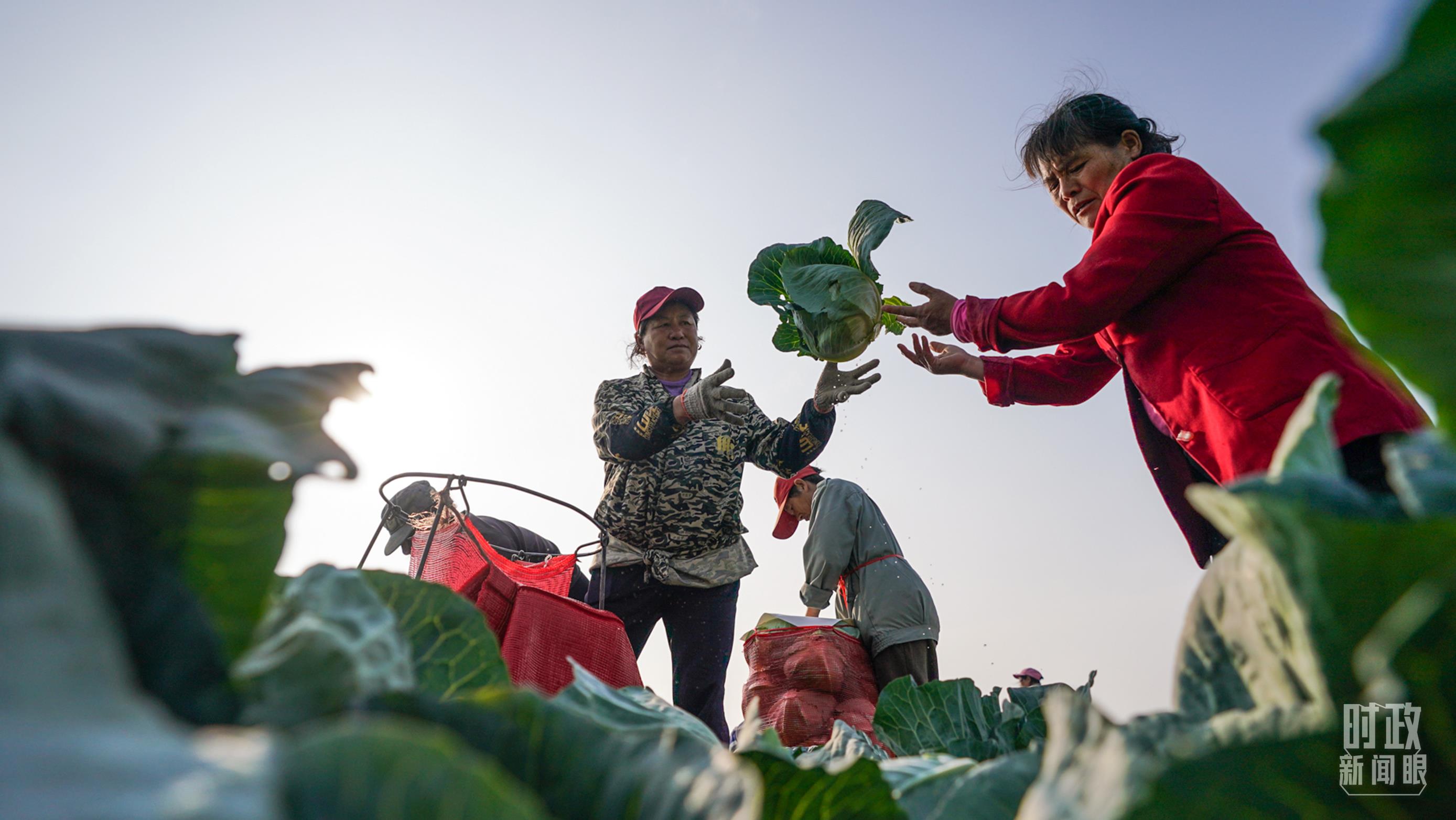 △四邑村村民正在采收蔬菜。(總臺(tái)記者李晉拍攝)