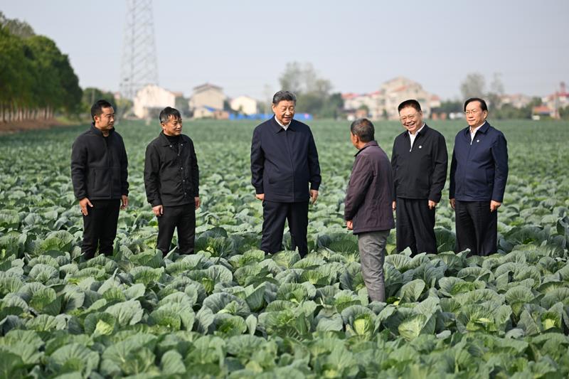 2024年11月5日,習(xí)近平總書記在湖北省咸寧市嘉魚縣潘家灣鎮(zhèn)十里蔬菜長廊考察時(shí),同菜農(nóng)親切交流。