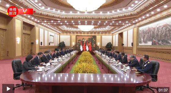 11月9日下午,國家主席習(xí)近平在北京人民大會堂同來華進行國事訪問的印度尼西亞總統(tǒng)普拉博沃舉行會談。
