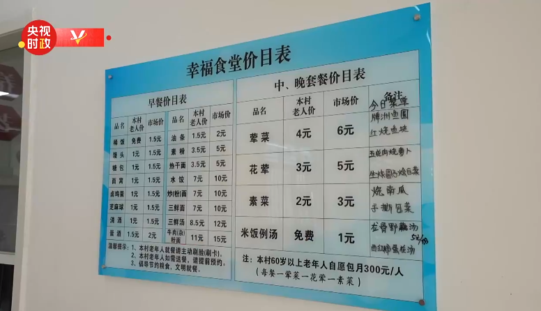 △ 養(yǎng)老服務驛站幸福食堂價目表 視頻截圖
