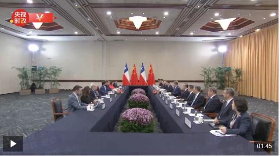當地時間11月15日,國家主席習近平在利馬出席亞太經合組織領導人非正式會議期間會見智利總統博里奇。