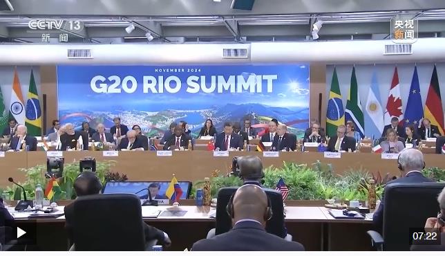 當(dāng)天,G20領(lǐng)導(dǎo)人第十九次峰會(huì)在里約熱內(nèi)盧現(xiàn)代藝術(shù)博物館開幕。峰會(huì)主題是“構(gòu)建公正的世界和可持續(xù)的星球”,重點(diǎn)聚焦全球不平等、抗擊饑餓與貧困、可持續(xù)發(fā)展和全球治理改革等議題。