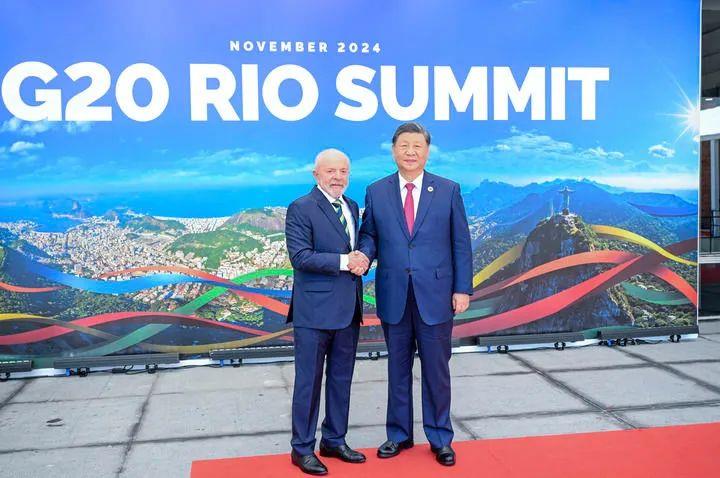 在此次里約熱內(nèi)盧峰會上,習近平主席倡議二十國集團繼續(xù)做完善全球治理、推動歷史進步的力量,并提出完善全球經(jīng)濟治理、金融治理、貿(mào)易治理、數(shù)字治理、生態(tài)治理、安全治理等中國方案。