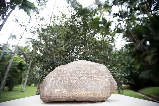 △巴西里約熱內(nèi)盧植物園,來自中國福建的華安石紀念牌記載:“1812年,首批抵達巴西的中國人在此栽下茶樹”。
