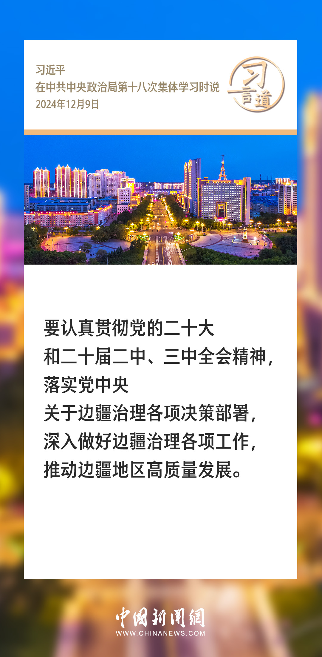 中共中央政治局12月9日就我國歷史上的邊疆治理進(jìn)行第十八次集體學(xué)習(xí)。中共中央總書記習(xí)近平在主持學(xué)習(xí)時強(qiáng)調(diào)——