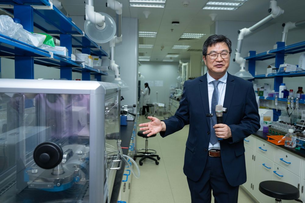 2024年6月17日,中藥質(zhì)量研究國家重點實驗室(澳門大學(xué))主任、澳門大學(xué)中華醫(yī)藥研究院院長陳新介紹實驗室情況。
