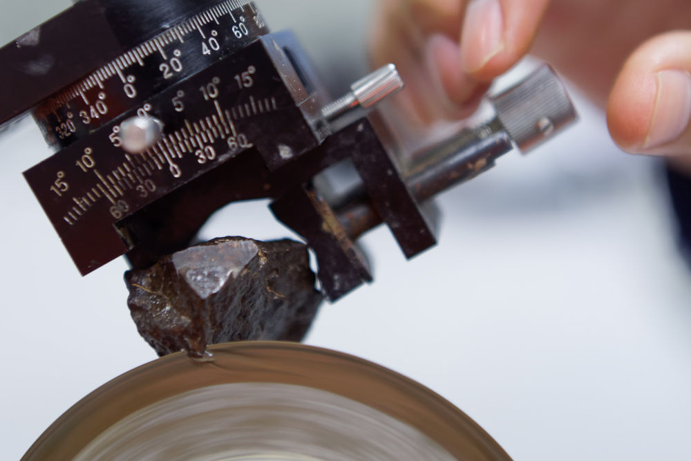 2019年10月31日,學(xué)生在月球與行星科學(xué)國家重點實驗室(澳門科技大學(xué))切割隕石。