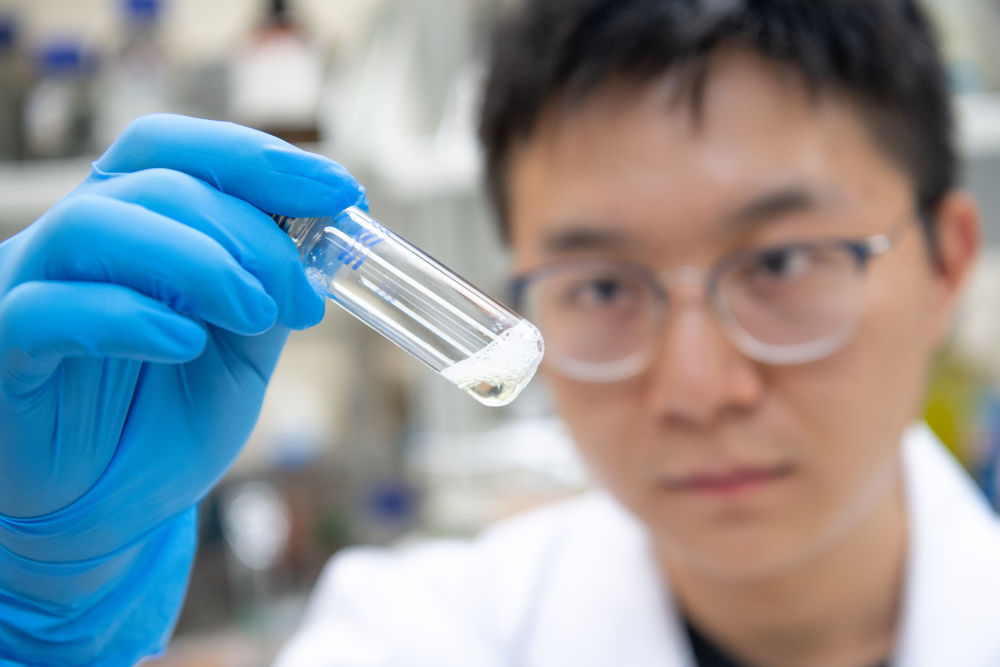 2019年11月1日,在中藥質(zhì)量研究國家重點實驗室(澳門大學(xué)),學(xué)生觀察藥物樣品的溶解狀態(tài)。