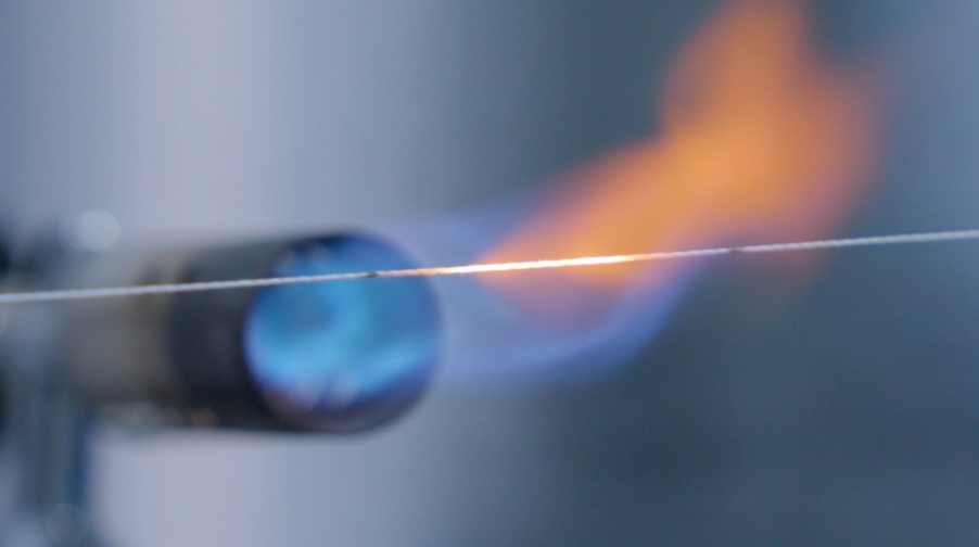 “這根絲超級(jí)耐高溫,1200℃的火焰也燒不斷它。它比頭發(fā)絲還細(xì),直徑只有7到12微米,卻能提起5公斤重物?!苯榻B,這根絲可以做成布、繩子、套管、織帶等,可應(yīng)用于石油化工、能源電力、國防安全等多個(gè)領(lǐng)域。10年研發(fā)期間,工作人員做了無數(shù)次試驗(yàn),打了幾萬個(gè)樣品,才讓它硬核出圈,填補(bǔ)了國內(nèi)高性能纖維材料的空白。