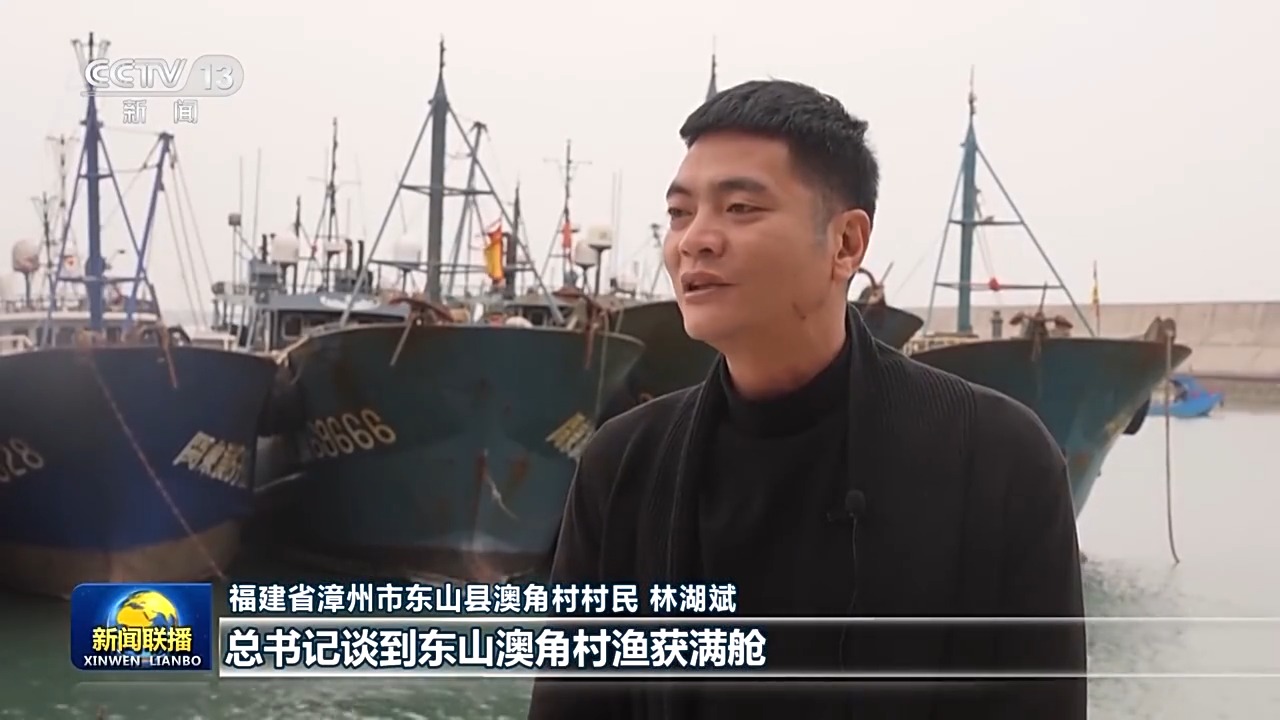 福建省漳州市東山縣澳角村村民 林湖斌:在新年賀詞中,總書記談到東山澳角村漁獲滿艙,讓我非常感動(dòng),也干勁十足?,F(xiàn)在是年節(jié)期間,正是海產(chǎn)品的銷售旺季,訂單也是越來越多。我們要擼起袖子加油干,讓我們海洋漁業(yè)發(fā)展得更好,把我們澳角村建設(shè)得更美好。
