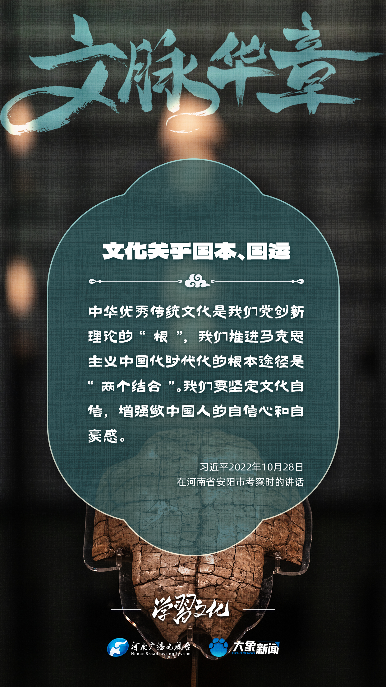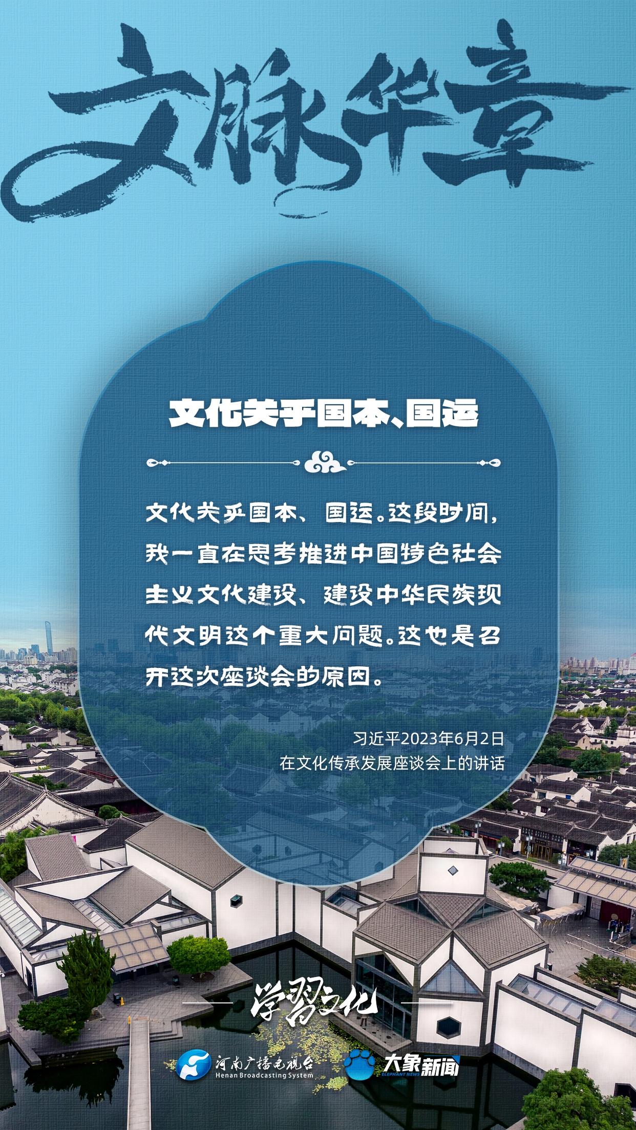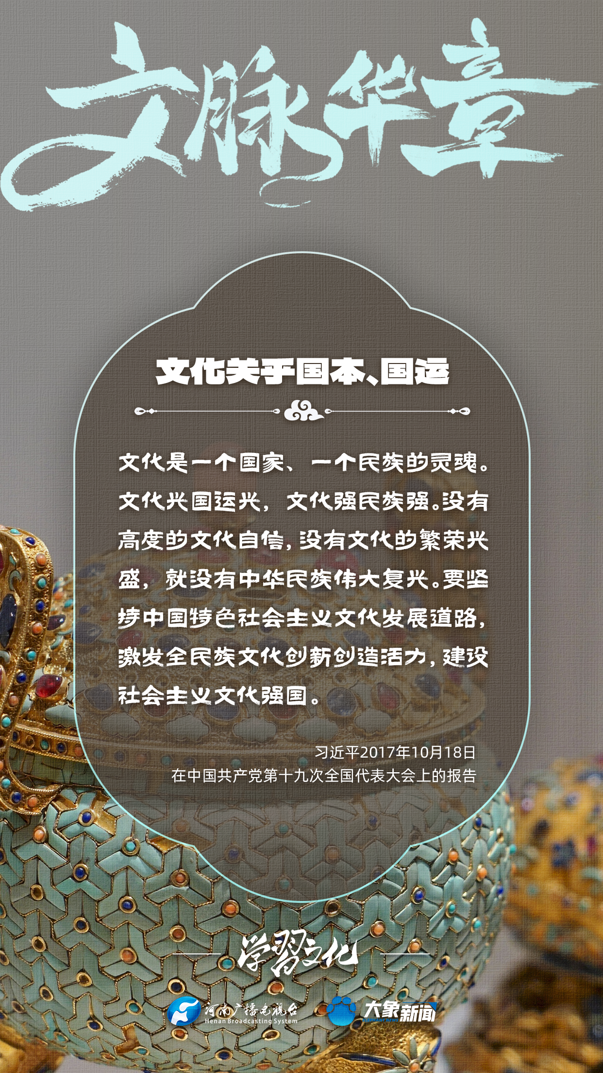 習(xí)近平總書記高度重視文化之于國家、之于民族的重大意義,強調(diào):文化是一個國家、一個民族的靈魂。文化興國運興,文化強民族強。沒有高度的文化自信,沒有文化的繁榮興盛,就沒有中華民族偉大復(fù)興。大象新聞梳理了習(xí)近平總書記的系列重要論述,我們一起學(xué)習(xí)。