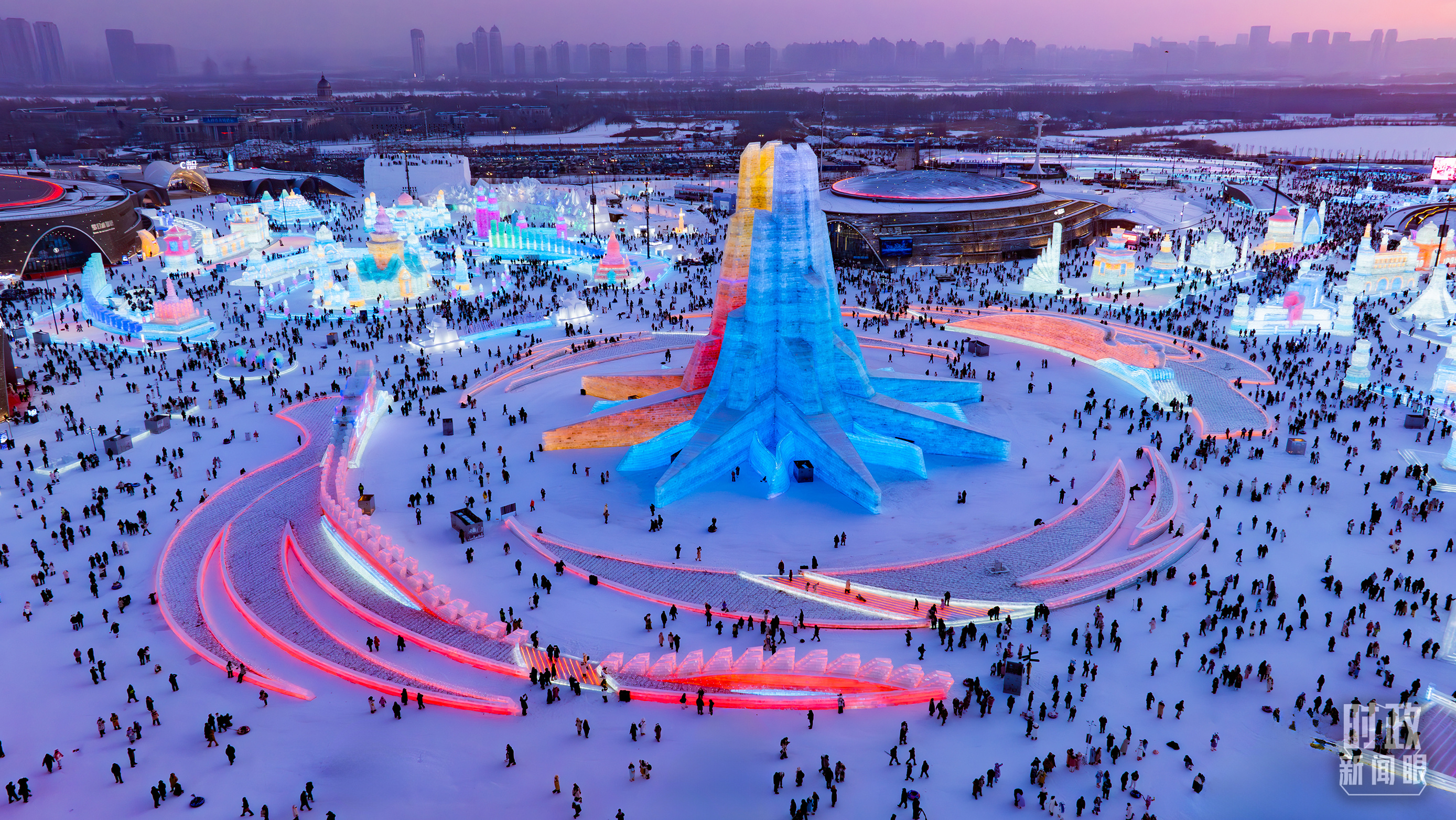俯瞰哈爾濱冰雪大世界。(總臺(tái)記者邵沖拍攝)