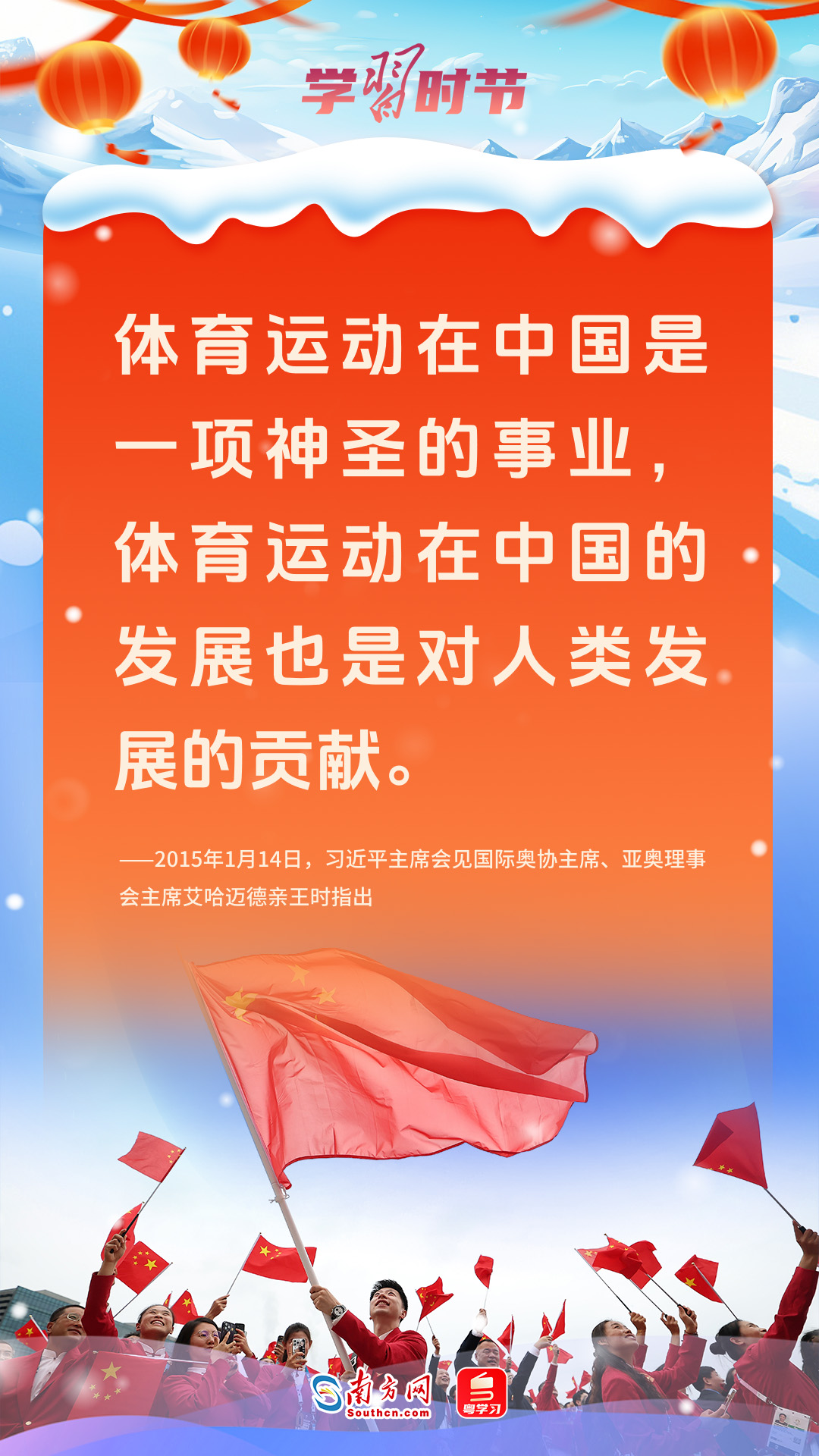 體育是增進(jìn)人民友誼的紐帶,習(xí)近平總書記多次強(qiáng)調(diào)以體育促進(jìn)團(tuán)結(jié)與和平,推動國之交、民相親。這個(gè)元宵節(jié),讓我們一起重溫習(xí)近平總書記的深刻話語,以體育精神匯聚團(tuán)結(jié)和平力量。