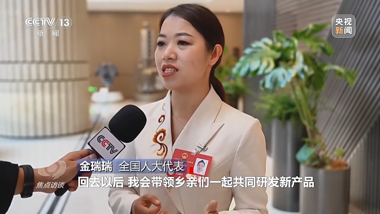 全國(guó)人大代表 金瑞瑞:方向和路徑都非常清晰,回去以后,我會(huì)帶領(lǐng)鄉(xiāng)親們一起共同研發(fā)新產(chǎn)品,把非遺手工的技藝傳承好和發(fā)揚(yáng)好,帶著鄉(xiāng)親們共同賺錢,把全國(guó)兩會(huì)擘畫的美好愿景轉(zhuǎn)化為實(shí)實(shí)在在的成績(jī)和收獲。