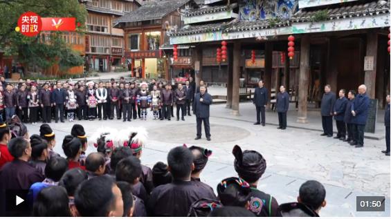 當天下午,習近平總書記此次考察第一站,走進位于黔、湘、桂三省區(qū)交界地段的肇興侗寨。