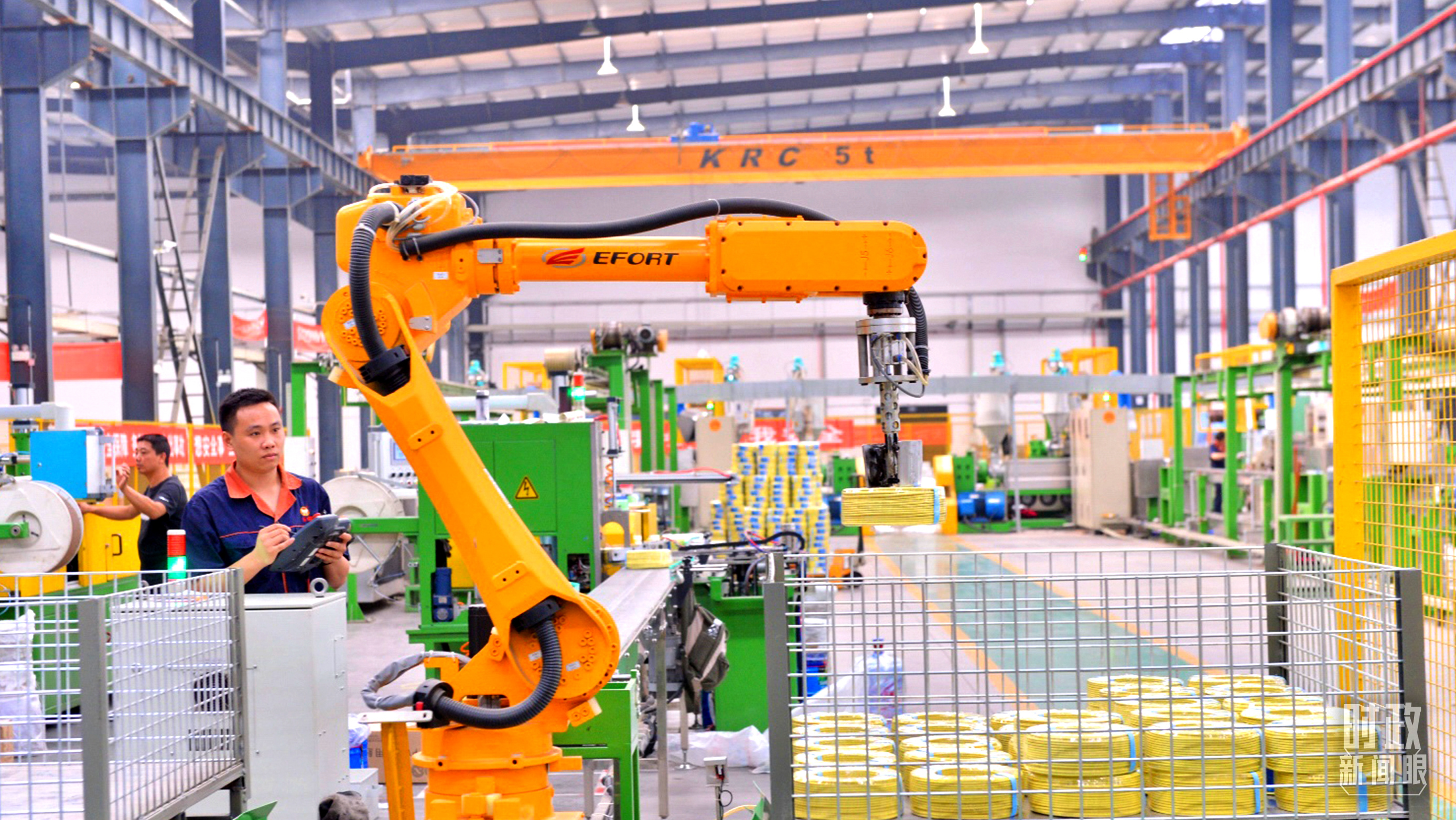 貴州省貴陽(yáng)市一家電線電纜企業(yè)的智能制造及智能倉(cāng)儲(chǔ)一體化車間。(總臺(tái)記者張秀練拍攝)
