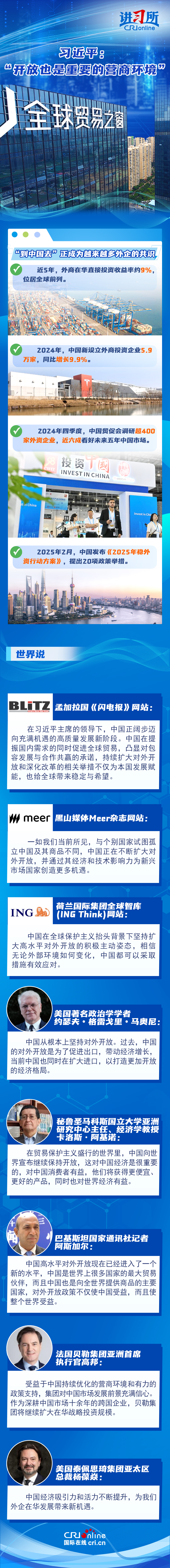 “中國開放的大門不會關(guān)閉,只會越開越大?!比ツ?2月,中國將“擴大高水平對外開放,穩(wěn)外貿(mào)、穩(wěn)外資”列為今年政府重點任務(wù)。新年以來,隨著政策紅利持續(xù)釋放,外資不斷用行動為中國投下“信心票”:德國光電行業(yè)巨頭蔡司宣布將在上海購地自建大中華區(qū)總部園區(qū),意大利百旺集團亞洲總部暨新工廠在蘇州高新區(qū)開業(yè),日本豐田汽車決定在華獨資設(shè)立雷克薩斯純電動汽車及電池的研發(fā)和生產(chǎn)公司……在他們看來,中國持續(xù)優(yōu)化營商環(huán)境、擴大高水平開放,經(jīng)濟吸引力和活力不斷提升,不僅為中國發(fā)展賦能,也給全球帶來穩(wěn)定與希望。