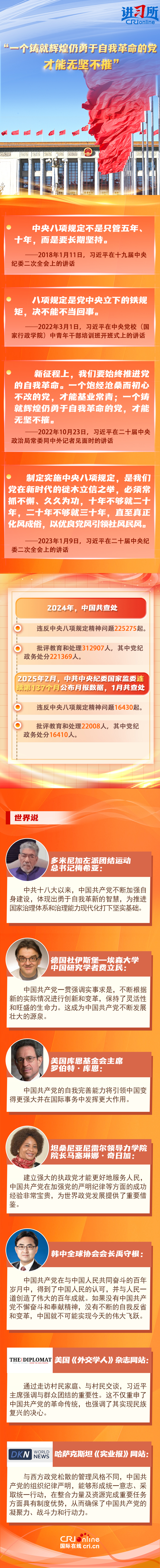 2012年12月4日,中共中央政治局審議通過關(guān)于改進(jìn)工作作風(fēng)、密切聯(lián)系群眾的八項(xiàng)規(guī)定。這是新時(shí)代中國共產(chǎn)黨人的徙木立信之舉,也成為國際社會觀察世界第一大執(zhí)政黨的標(biāo)尺。