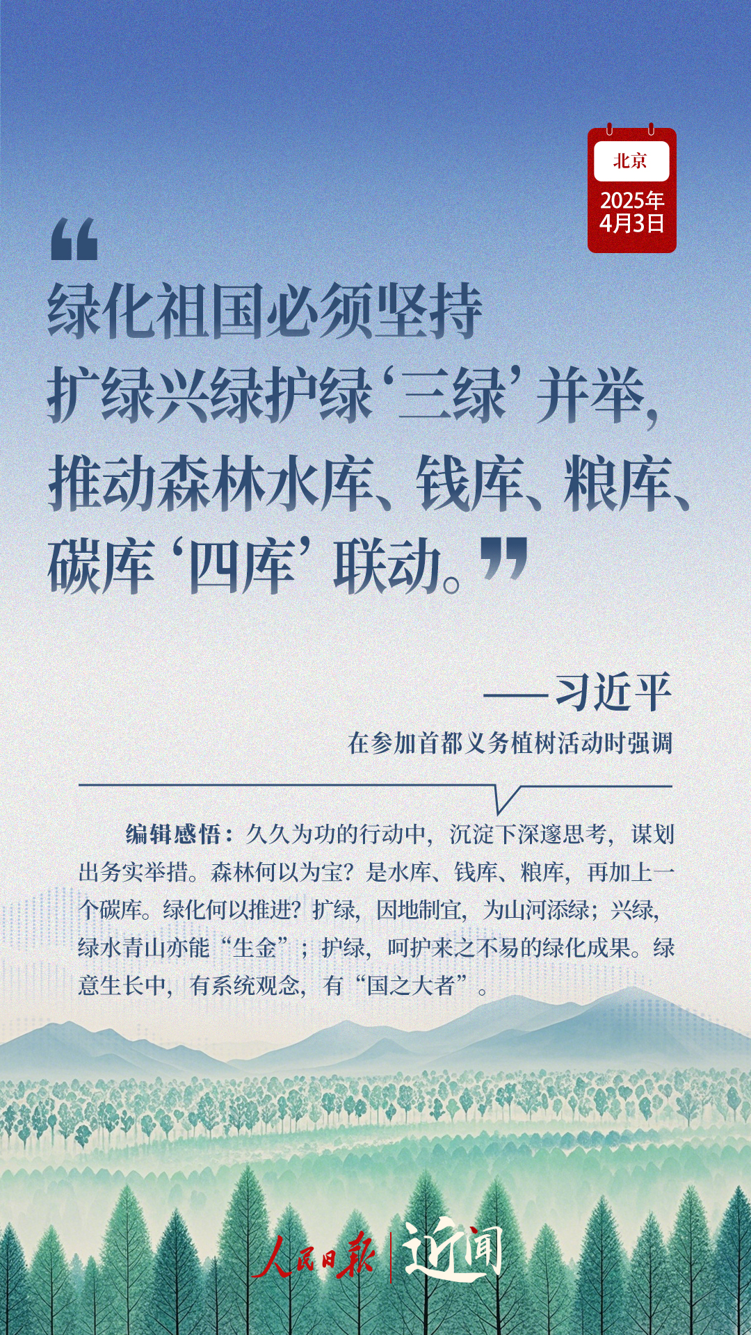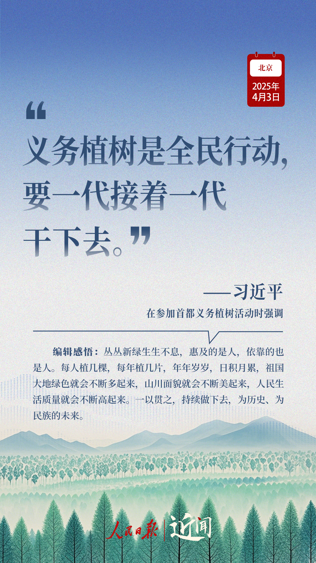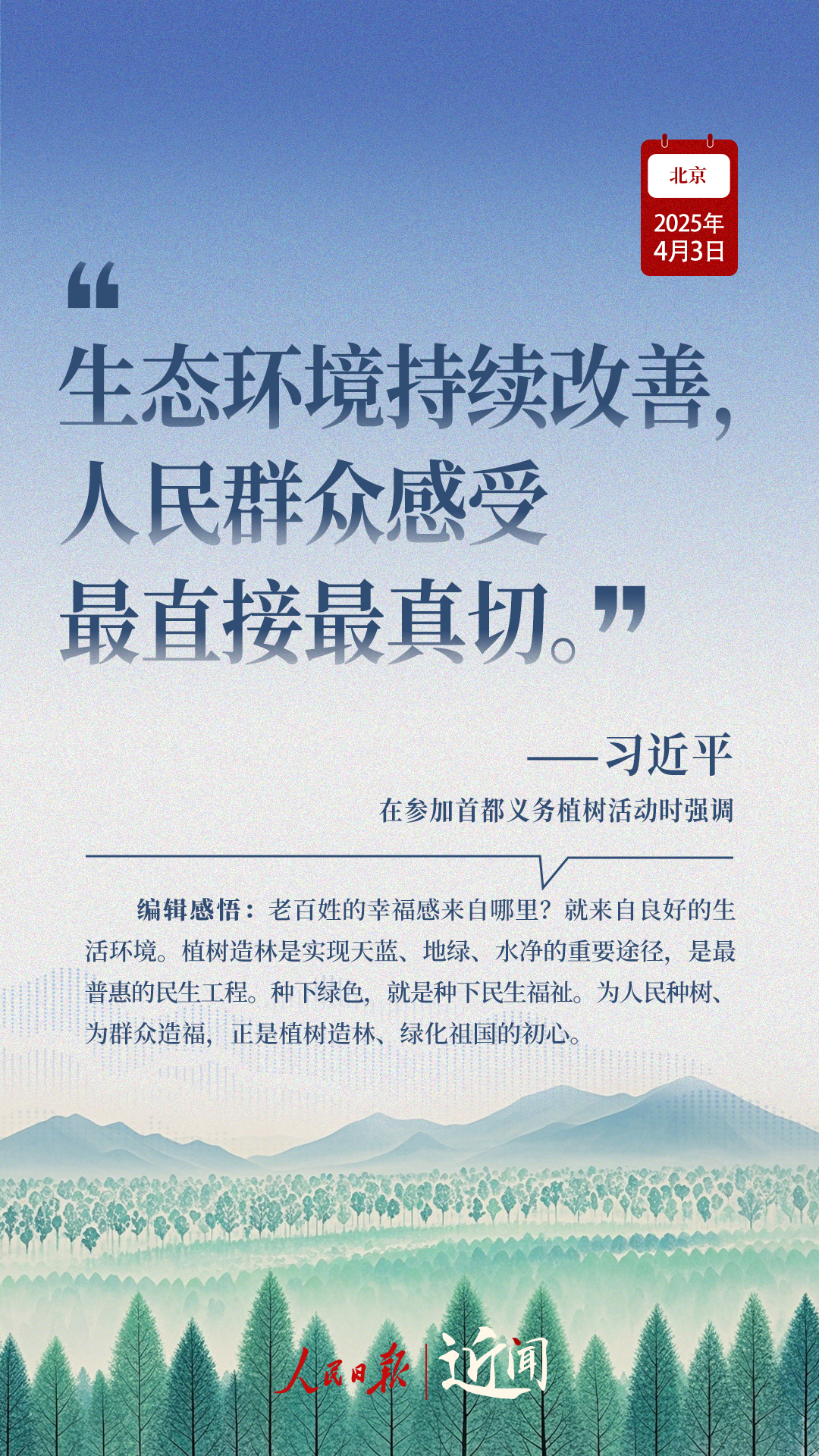 “生態(tài)環(huán)境持續(xù)改善,人民群眾感受最直接最真切?!薄傲x務植樹是全民行動,要一代接著一代干下去?!痹谥矘洮F(xiàn)場,從這些話語讀懂一份堅持、一種情懷。