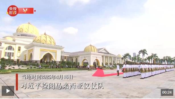 當(dāng)?shù)貢r(shí)間4月16日上午,國(guó)家主席習(xí)近平檢閱馬來(lái)西亞儀仗隊(duì)。