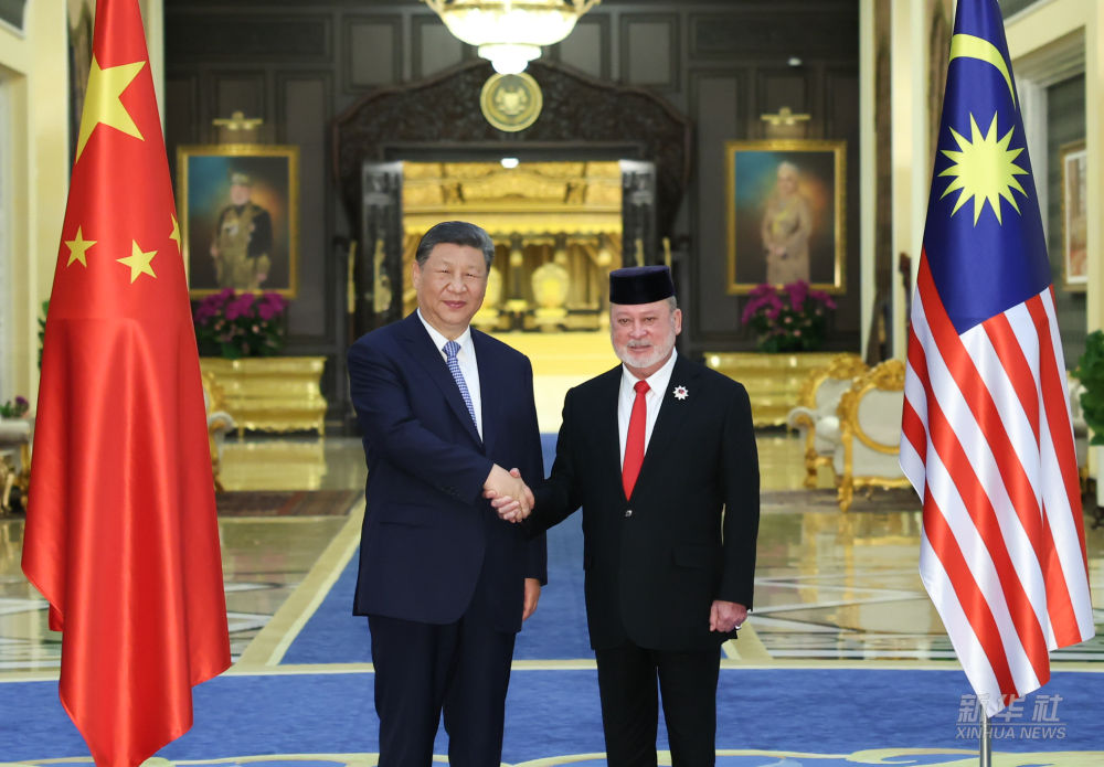 4月16日上午,馬來西亞最高元首易卜拉欣在馬來西亞國家王宮同中國國家主席習近平舉行會見。