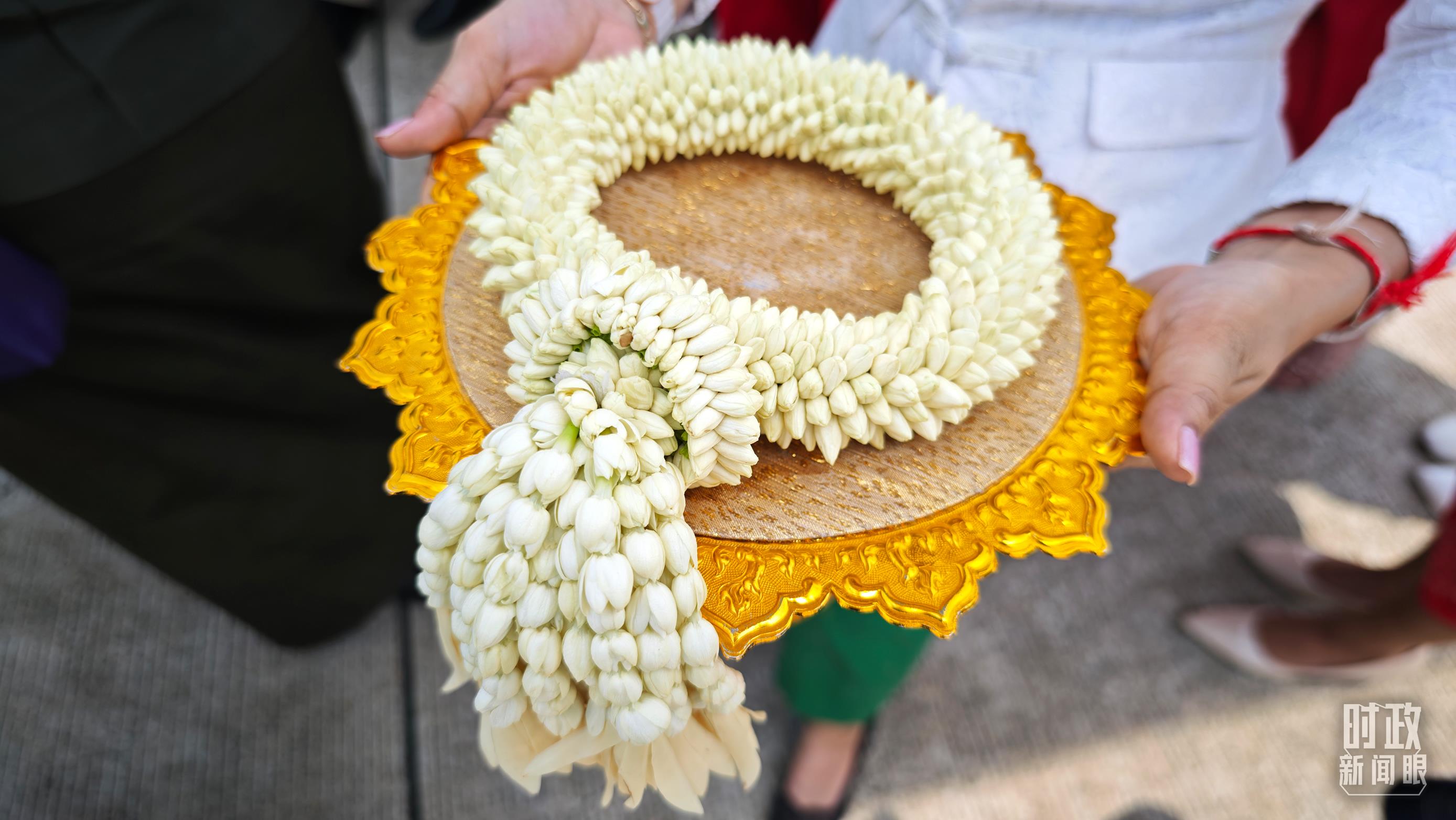 柬埔寨王室珍娜公主向習(xí)主席獻(xiàn)上的茉莉花手環(huán)。(總臺(tái)央廣記者潘毅拍攝)