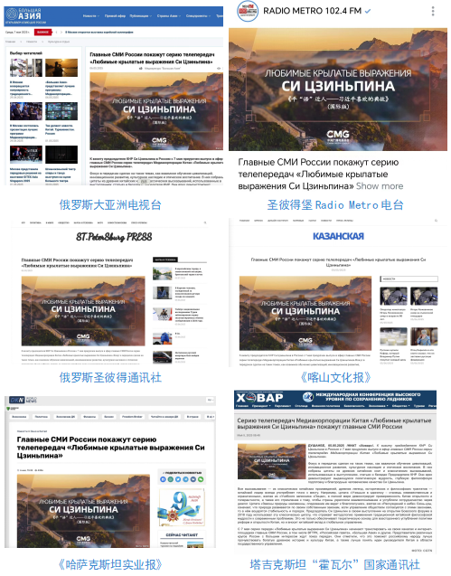 俄羅斯大亞洲電視臺(tái)、圣彼得堡Radio Metro電臺(tái)、俄羅斯圣彼得通訊社、《喀山文化報(bào)》《哈薩克斯坦實(shí)業(yè)報(bào)》、塔吉克斯坦“霍瓦爾”國(guó)家通訊社等亞歐地區(qū)多家主流媒體播發(fā)相關(guān)報(bào)道。