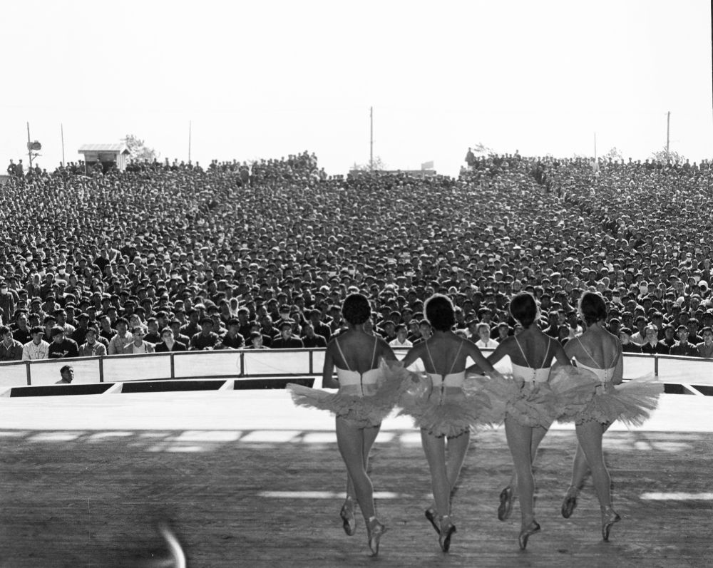 1957年10月,蘇聯(lián)國(guó)立新西伯利亞歌劇芭蕾舞劇院為北京石景山鋼鐵廠(chǎng)工人演出。