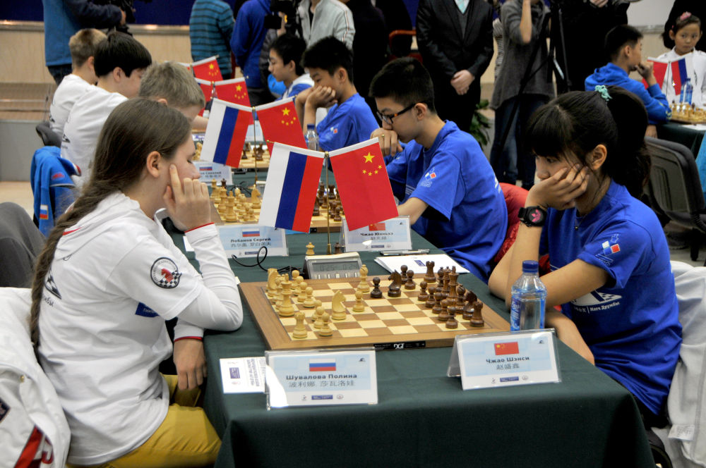 2014年11月7日,來(lái)自中國(guó)和俄羅斯的國(guó)際象棋青少年選手在“以棋會(huì)友”中俄國(guó)際象棋青少年友誼賽中對(duì)弈。
