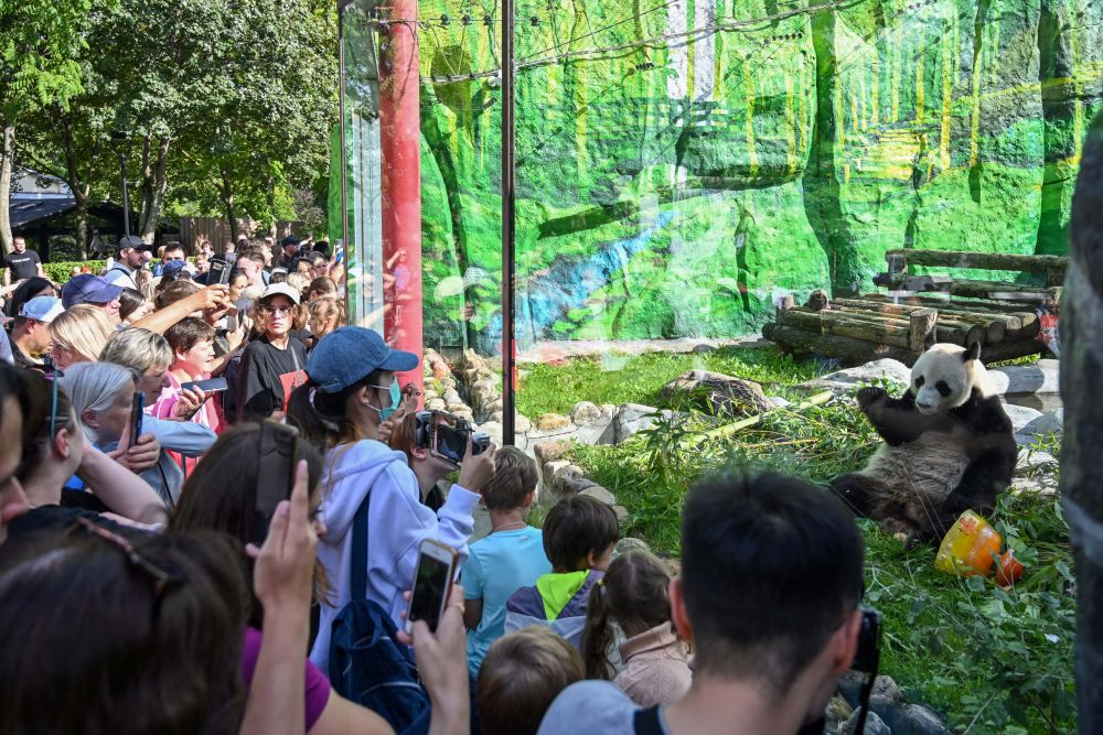 2024年7月31日,觀眾在俄羅斯莫斯科動(dòng)物園拍攝大熊貓“如意”。當(dāng)日,莫斯科動(dòng)物園為來(lái)自中國(guó)的大熊貓“如意”慶祝生日。雄性大熊貓“如意”2016年7月31日出生于中國(guó)四川雅安碧峰峽基地,它和大熊貓“丁丁”于2019年4月29日抵達(dá)莫斯科,開(kāi)啟為期15年的旅居生活。