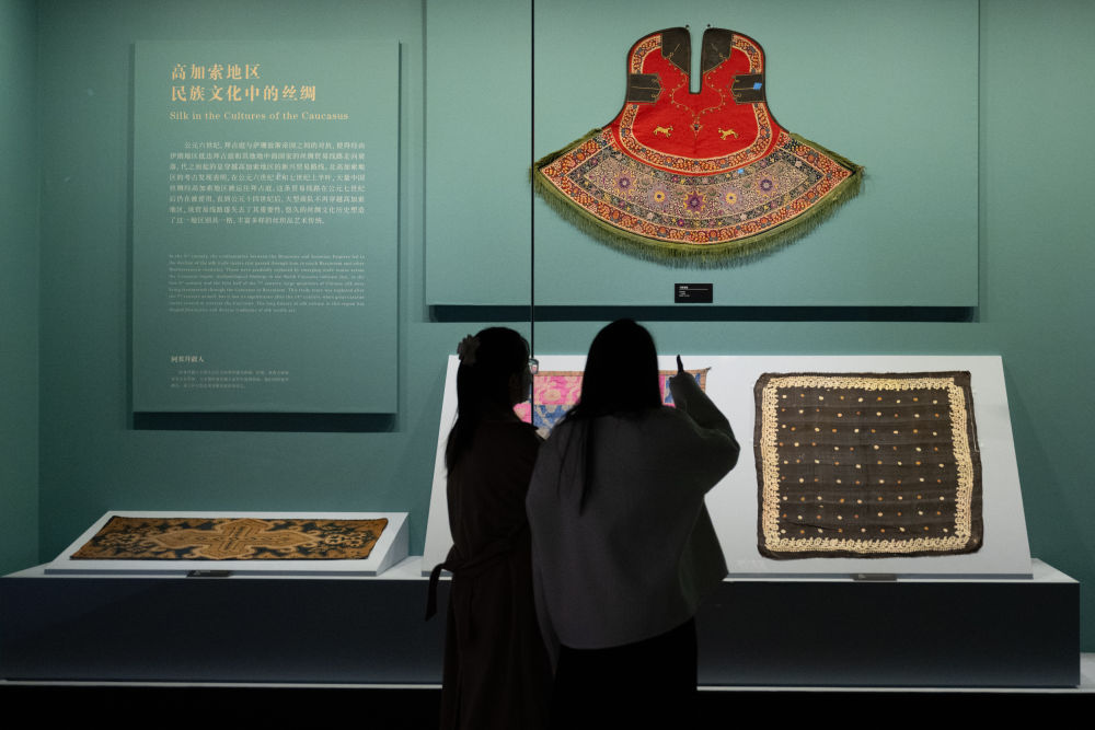 2024年11月22日,由湖北省博物館、俄羅斯民族博物館主辦的“傳統(tǒng)之繭:歐亞大陸民族文化中的絲綢——俄羅斯民族博物館藏文物展”在湖北省博物館開(kāi)幕。這是參觀者在欣賞展品。