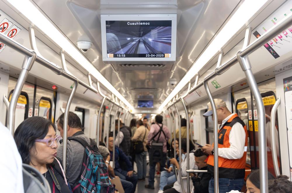 2025年4月,人們在墨西哥首都墨西哥城乘坐地鐵新1號線列車。