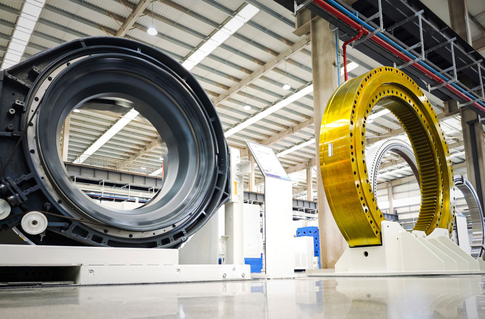 2025年5月19日在洛軸拍攝的醫(yī)療CT機(jī)軸承(左)和盾構(gòu)機(jī)軸承(右)。