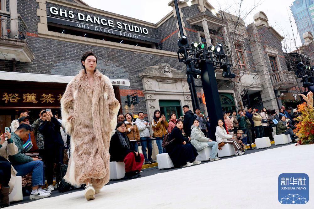 2024年12月7日,模特在“海·派張園時尚文化周”中國青年設(shè)計師時裝秀上展示設(shè)計師服裝作品。時裝秀以張園建筑主色調(diào)與設(shè)計線條為靈感,百年石庫門建筑群落為背景,將茂名北路作為T臺秀場,獨具上海特色。
